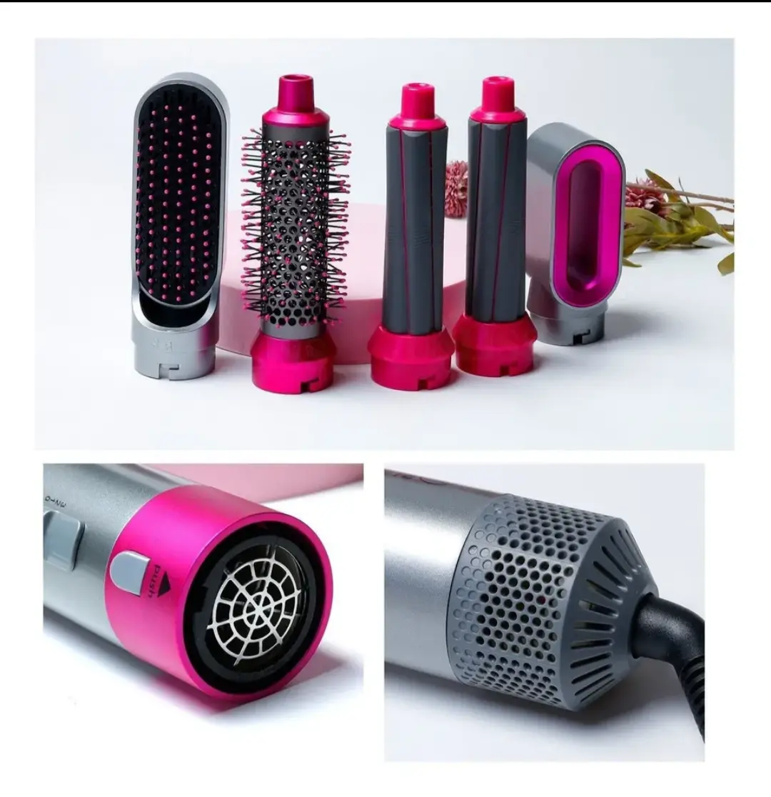 - 5 accesorios intercambiables: cepillo recto, cepillo brushing, buclera hacia la derecha y hacia la izquierda, pre moldeado. (Ninguno es giratorio)